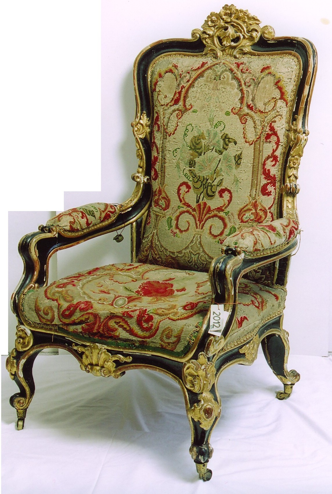 Na rycinie Maszyńskiego z 1877 r., przedstawiającej wnętrze galeryi zwanej Muzeum, wśród wielu innych mebli ukazany jest fotel, nawiązujący swą bogatą formą i dekoracją do stylistyki barokowej. Postawiony został przy kominku - dla wygody, odpoczynku i kontemplacji dzieł sztuki w pomieszczeniu dostępnym dla gości muzealnych.