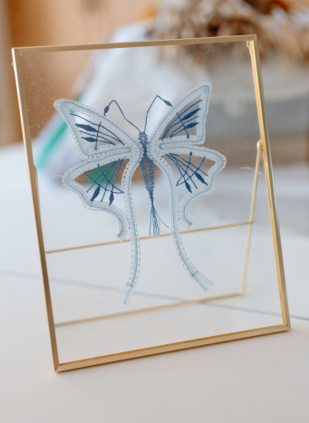 completes a designated piece of lace, and then we combine everything together. The preparation of