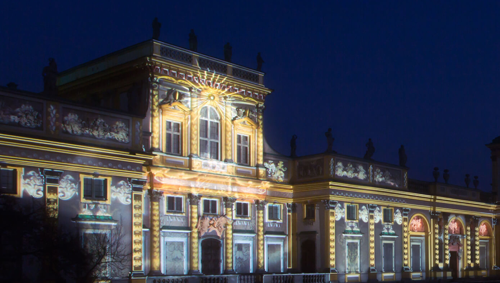 Mapping is a three-dimensional show combining light, image and sound. It is projected onto the palace’s façade and uses its architectural elements to create the illusion of a building come to life. During the mappings, King Jan III and Queen Maria Kazimiera appear in the palace windows, and viewers witness, among others, the entry of a horse procession and a court dance show.