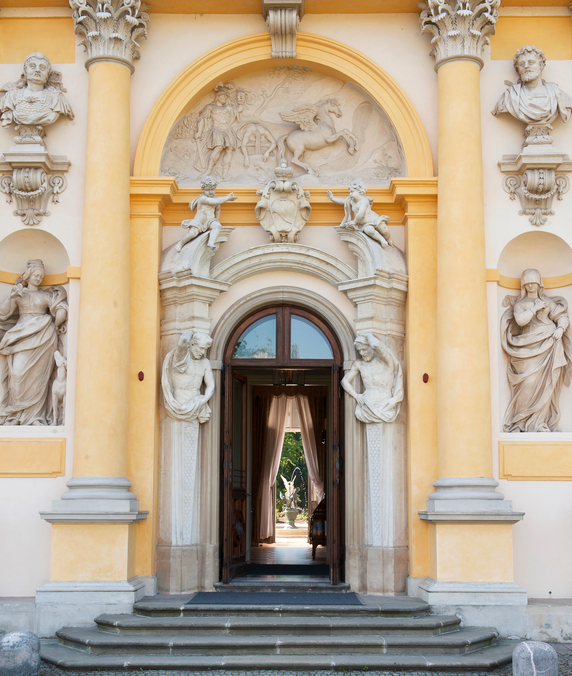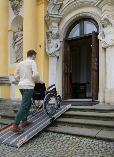 - Steps with a total height of 36 cm lead to the visitor entrance. Additionally, at the entrance there is a 6 cm high threshold. The Museum has foldable ramps to facilitate entry and exit from the Orangery.