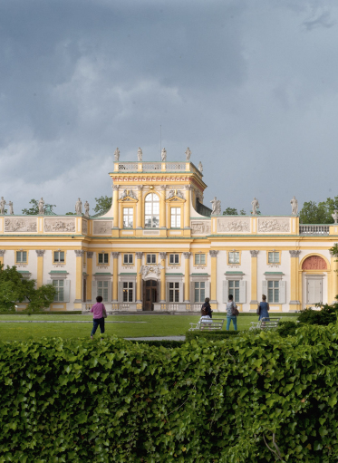 - The most convenient way to get to the Palace is from the WILANÓW bus terminus: to get to the Museum, cross Powsińska street. The most convenient crossing are the lanes with traffic lights located next to the McDonald’s outlet. We cross the street, reach the fence, then turn right and continue walking straight along the pavement. Along the way, on the left we pass a number of buildings and a church, behind which the Museum area begins.