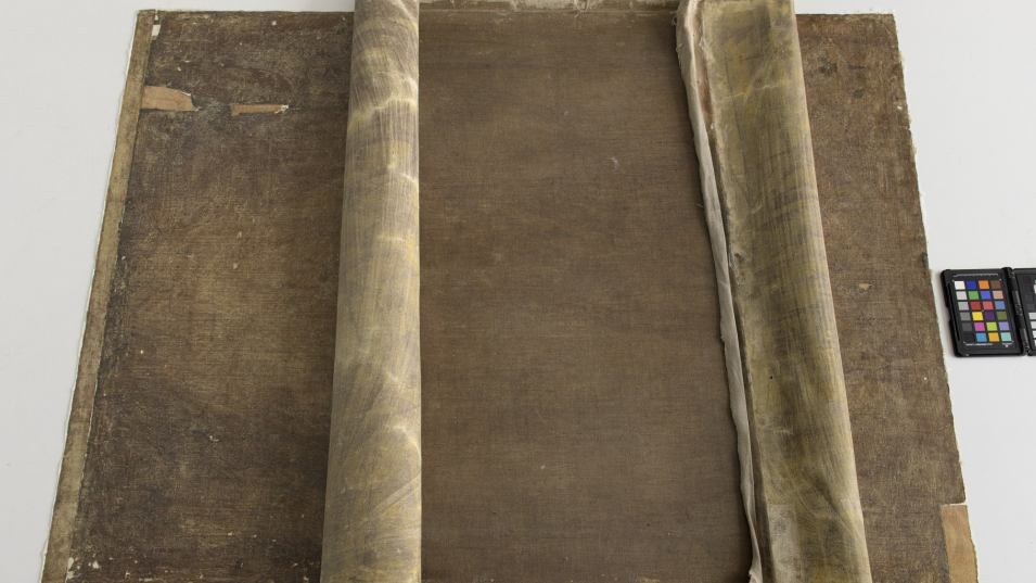 Konieczne było usunięcie starego płótna dublażowego ze względu na powstałe deformacje oryginalnego podobrazia. Odsłoniły się wówczas różne uszkodzenia płótna oraz niewystarczające naprawy wykonane wcześniej. Analiza tych zniszczeń wskazuje, że obraz najprawdopodobniej był kiedyś zdjęty z ram, zwinięty i spłaszczony. Po zdjęciu dublażu w lewym dolnym rogu odwrocia odkryto czarny, nieznany wcześniej motyw, który może być znakiem autora przygotowania podobrazia.