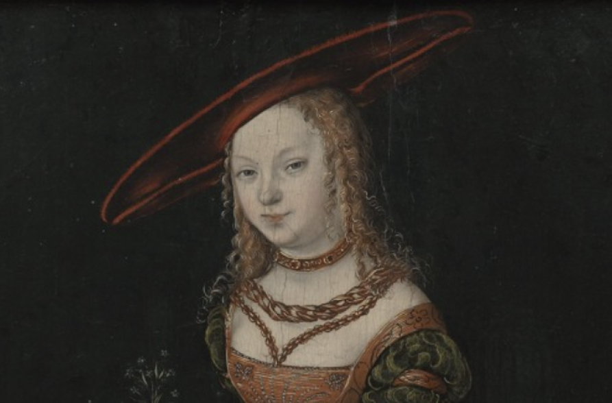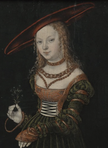 Próby ustalenia nazwiska tajemniczej piękności nie powiodły się. Przypuszczano, że portret przedstawiał księżniczkę Sybillę van Cleve. Samo określenie „księżniczka”, zapisane w niektórych inwentarzach, budzi jednak wiele wątpliwości. Cranach wielokrotnie malował strojne damy w podobnych kapeluszach, o zbliżonych rysach twarzy, w których powtarzał upodobany przez siebie kanon urody kobiecej. Jego pierwowzorem mogło być kilka modelek, pochodzących z różnych sfer społecznych, niekoniecznie arystokratycznych. Trzymana w ręku przez portretowaną gałązka niezapominajek może świadczyć o tym, że był to portret „narzeczeński”.