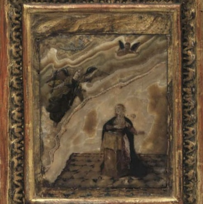 Użycie kamienia jako podłoża malarskiego ma swoje źródło w sięgającej jeszcze czasów antycznych tradycji tzw. Paragone – sporu mającego na celu określenie, która ze sztuk zasługuje na miano nadrzędnej. W polemice rzeźbiarzy z malarzami często przytaczano argument o większej trwałości rzeźby. W odpowiedzi malarze zaanektowali tworzywo rzeźbiarzy do własnych celów, z korzyścią dla kolorów, które nie traciły swojej świeżości tak szybko jak farby kładzione na płótnie czy desce. Tę technikę upodobał sobie szczególnie manieryzm, kiedy to malowidła wykonywane na kamieniach ozdobnych często stawały się ozdobami tzw. Wunderkammer , czyli prywatnych kolekcji dzieł wyrafinowanych i osobliwych.