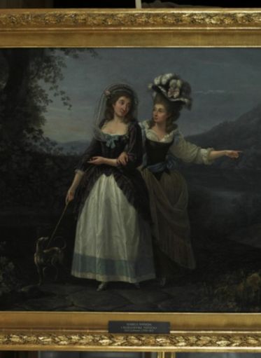 Przedstawia młode siostry Potockie na tle malowniczego krajobrazu rozciągającego się wokół jeziora Albano położonego niedaleko Rzymu.