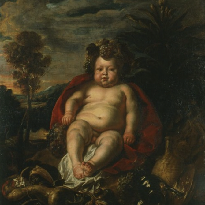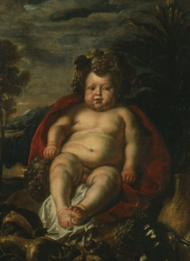 Przedstawia boga Bachusa ukazanego jako dziecko na tle krajobrazu. Na obrazie dominuje ciemna, intensywna kolorystyka.