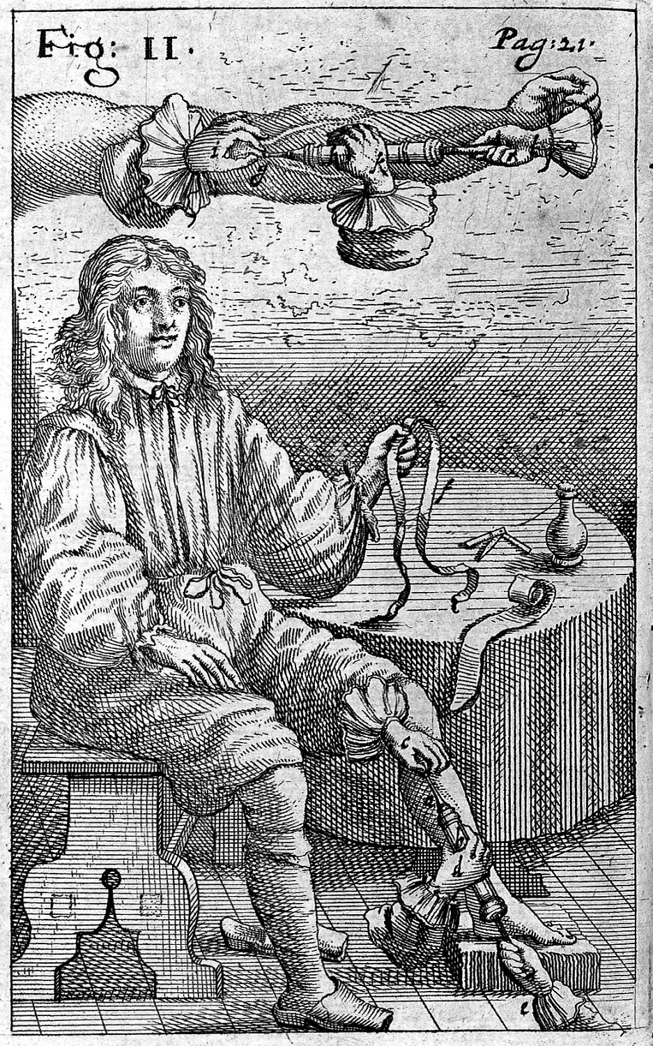 W 1666 roku niemiecki medyk Johann Sigismund Elsholtz wydał w Berlinie niewielką książeczkę zatytułowaną Clysmatica. Miała ona przyczynić się do powstania nowego sposobu podawania leków, gdyż promowała infuzje dożylne, tak popularne w XX wieku. Pracą tą zainteresował się wkrótce pewien lekarz z Gdańska, który zaczął eksperymentować z podawaniem wlewów dożylnych u pacjentów przebywających w tamtejszych szpitalach.