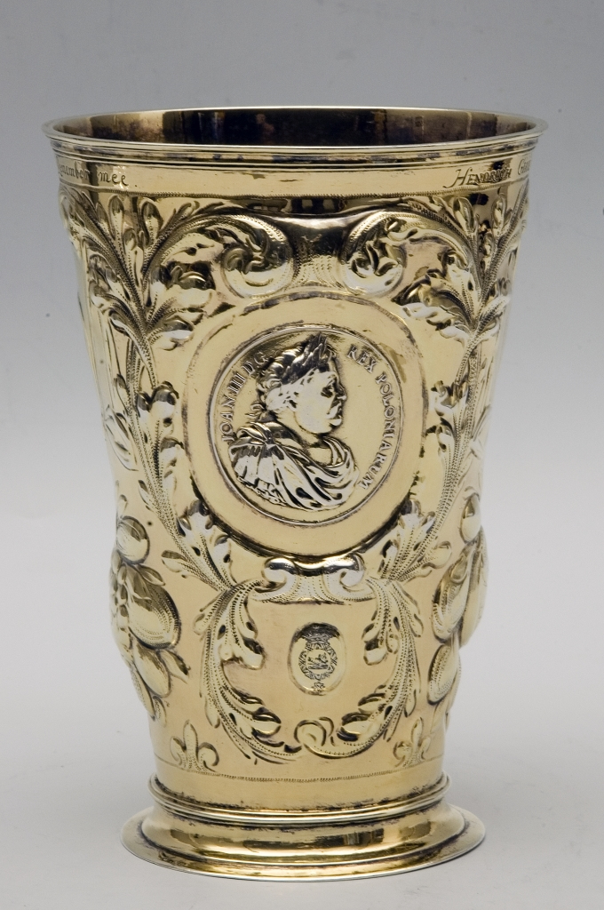 Na ilustracji widoczny jest srebrny kubek z warsztatu Holla, będący darem rodaków z Londynu dla kolekcji Muzeum Pałacu w Wilanowie. Więcej o kubku z medalionami tutaj.