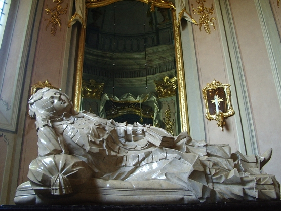 Niesamowity efekt uzyskał twórca (najprawdopodobniej był nim Lwowianin Franciszek Olędzki) nagrobka Marii Amalii z Brühlów Mniszchowej w kościele parafialnym w Dukli. Na cokole z czarnego marmuru, znajduje się jedna z najciekawszych rokokowych rzeźb nagrobnych dawnej Rzeczypospolitej. Oto młoda kobieta ucięła sobie drzemkę podczas lektury książki, którą wciąż trzyma w ręku. Ubrana jest w pełną falbanek suknię, na nogach ma zgrabne pantofelki... Żadnych motywów sepulkralnych, nawet krzyża nie przedstawił artysta. O śmierci przypomina tylko jedno – ściany kaplicy zostały wyłożone lustrami, w których odbija się niezliczoną ilość razy w coraz większej oddali śpiąca postać, zupełnie jakby znikała nam z oczu odchodząc w stronę nieskończoności… Jest to jeden z najoryginalniejszych i najbardziej przejmujących barokowych konceptów w sztuce Rzeczypospolitej.