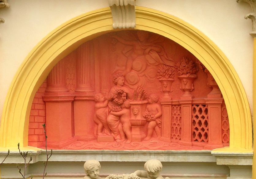Sile i męstwu Herkulesa przeciwstawione są wdzięki niewieście, a wraz z nimi kwiaty i śpiewy, hory i charyty – nazywane też gracjami. Opiekowały się one wszystkimi cudami przyrody i patronowały odradzającej się co roku wegetacji. Gdy przyjrzymy się uważniej płaskorzeźbie znajdującej się na lewym łuku północnej strony fasady, możemy ulec złudzeniu, że to towarzyszki Flory zasiadły na polanie i wypatrują jej nadejścia.