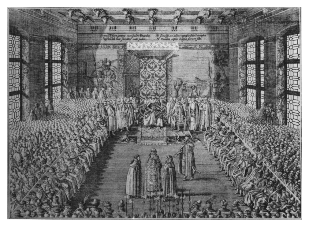 Najbardziej spektakularnym momentem po kapitulacji Smoleńska (13 czerwca 1611 r.), oddziałującym na serca i umysły, stał się wjazd do Warszawy niedawnego zwycięzcy spod Kłuszyna – hetmana Stanisława Żółkiewskiego, oddanie przezeń 29 października tego roku Zygmuntowi III Wazie, w obecności obu izb Sejmu, zdobytych sztandarów i prezentacja nie byle jakich jeńców – zdetronizowanego cara Wasyla IV Szujskiego i jego dwóch braci Iwana i Dymitra. To „oddawanie tryumfalne” odbyło się w największej wówczas sali Zamku Królewskiego – Izbie Senatorskiej, gdzie na tronie zasiadł w majestacie polski monarcha, otoczony całą swą świtą, senatorami, posłami ziemskimi i duchowieństwem. Podniosłą uroczystość należało czym prędzej uwiecznić pędzlem, dlatego też w tym celu wezwano z Krakowa królewskiego malarza, Tomasza Dolabellę (ok. 1570 – 1650).