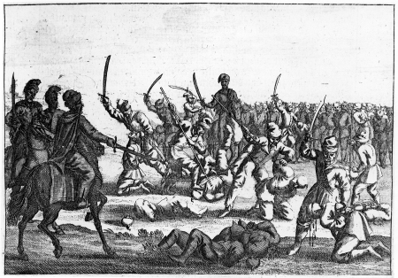 Hekatomba batohańska nie mogła oczywiście pozostać niezauważona w ówczesnej historiografii europejskiej. Opis tej wyjątkowo ohydnej zbrodni, nasuwającej przejrzyste analogie z tragedią katyńską, znalazł się w trzecim tomie dzieła Hioba Ludolfa Allgemeine Schau = Bühne oder Welt (Franckfurt am Mayn 1713). Towarzyszyła mu miedziorytowa ilustracja anonimowego autorstwa, która tylko w minimalnym stopniu oddaje grozę tamtych zdarzeń: w nieokreślonej bliżej przestrzeni dzicy ordyńcy nohajscy mordują jeńców, pod bacznym okiem trzech dowódców kozackich, w tym zapewne Zołotareńki, zachęcającego swych ludzi okrzykiem „Zemsta za Berestecką!”. W głębi stoi zwarty tłum powiązanych i czekających na swą kolej Polaków.