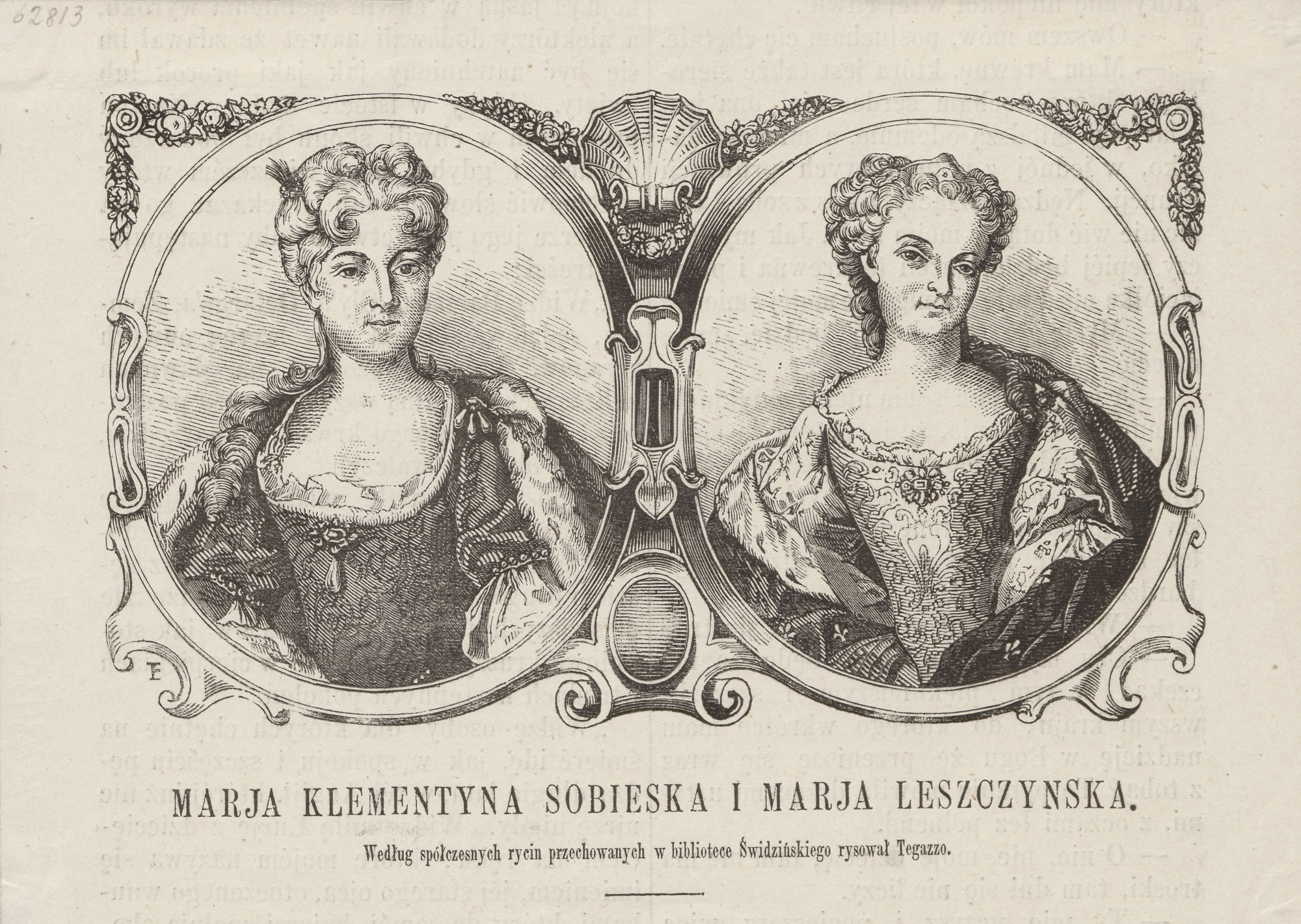 Drzeworyt sztorcowy autorstwa działającego w Warszawie malarza i ilustratora Franciszka Tegazzo (1829–1879) stanowił ilustrację do artykułu pt. „Marja Klementyna Sobieska i Marja Leszczyńska” Józefy Śmigielskiej-Dobieszewskiej (1820–1899), warszawskiej powieściopisarki i publicystki. Tekst zamieszczony został w wydawanym i finansowanym w znacznej mierze przez autorkę „Kółku Domowym”, piśmie przeznaczonym dla rodzin i podejmującym zarazem problematykę roli kobiet w polskiej tradycji. Śmigielska zestawiła w artykule losy dwóch polskich arystokratek, Marii Klementyny Sobieskiej i Marii Leszczyńskiej. Zdaniem autorki, obydwie były nieszczęśliwe w pożyciu małżeńskim, wykazały się natomiast szczególną troską o ubogich i pokrzywdzonych. Tegazzo stworzył portrety bohaterek artykułu korzystając z osiemnastowiecznych rycin jako wzorów.