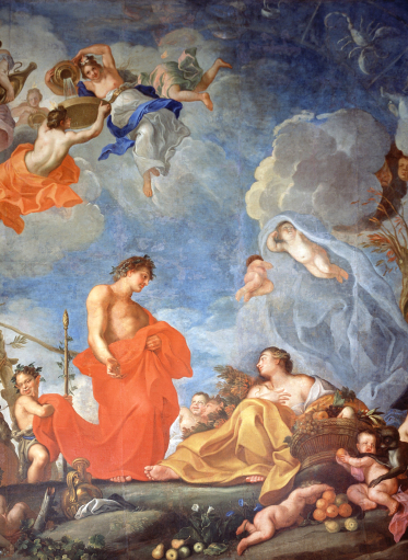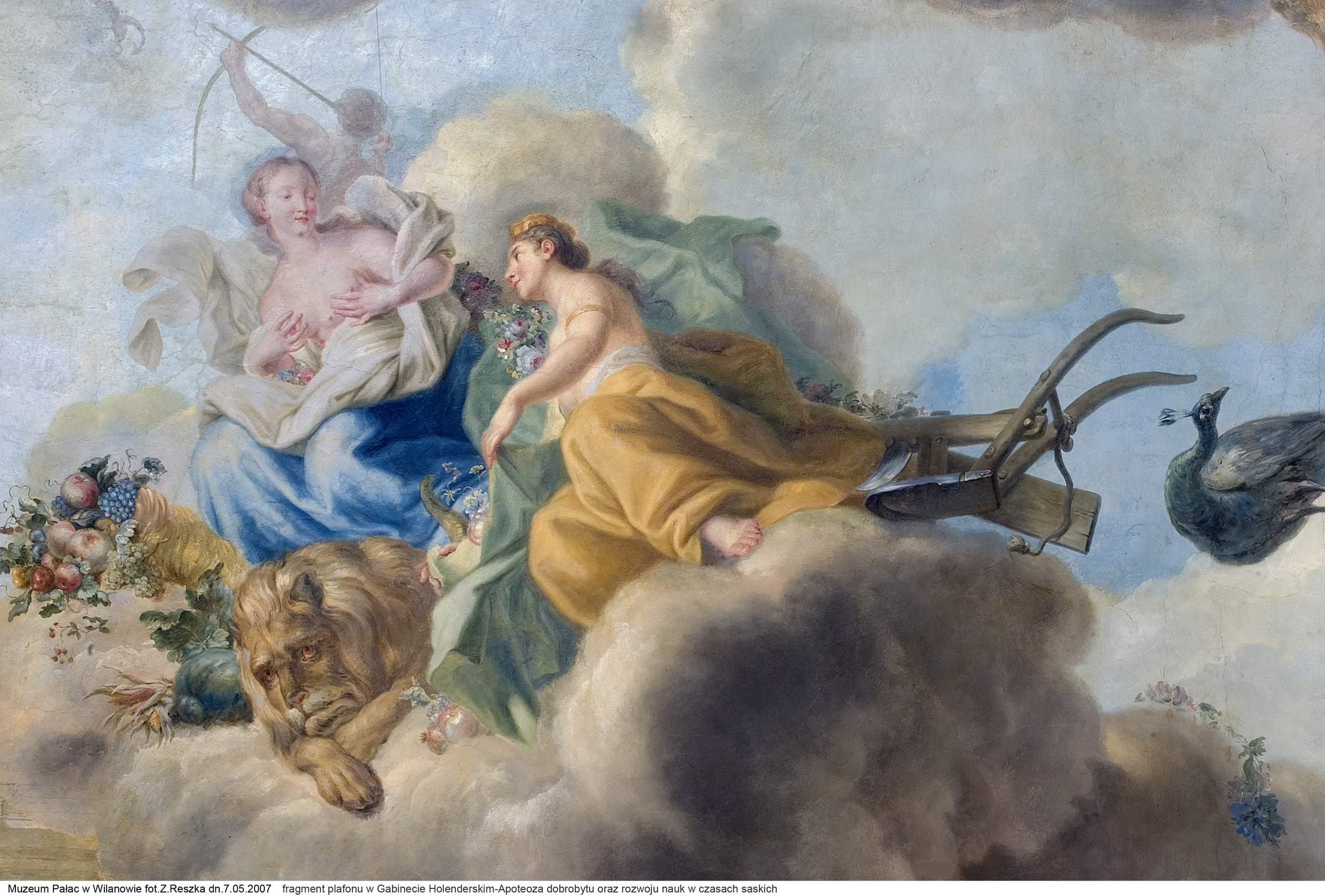 Bogactwo darów ziemi ukazane na plafonie odwołuje się do płodności królowej Marii Kazimiery, w której upatrywano założycielkę dynastii Sobieskich.
