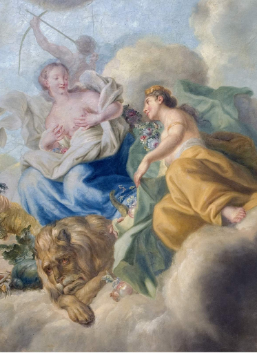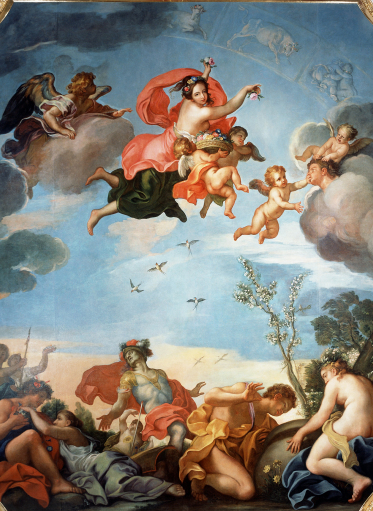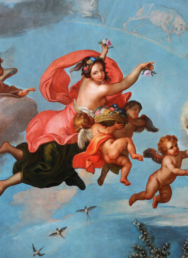 Wyobrażenie wiosny ozdobiło Sypialnię Królowej, sławiąc wdzięki i przymioty Marii Kazimiery.
