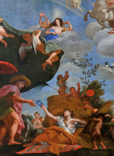 Malowidło symbolizujące łagodność, rozkwit i piękno odwołuje się do przymiotów królowej Marii Kazimiery, która jak wiosna przynosi ludziom radość i patronuje pozytywnym przemianom w Rzeczypospolitej.