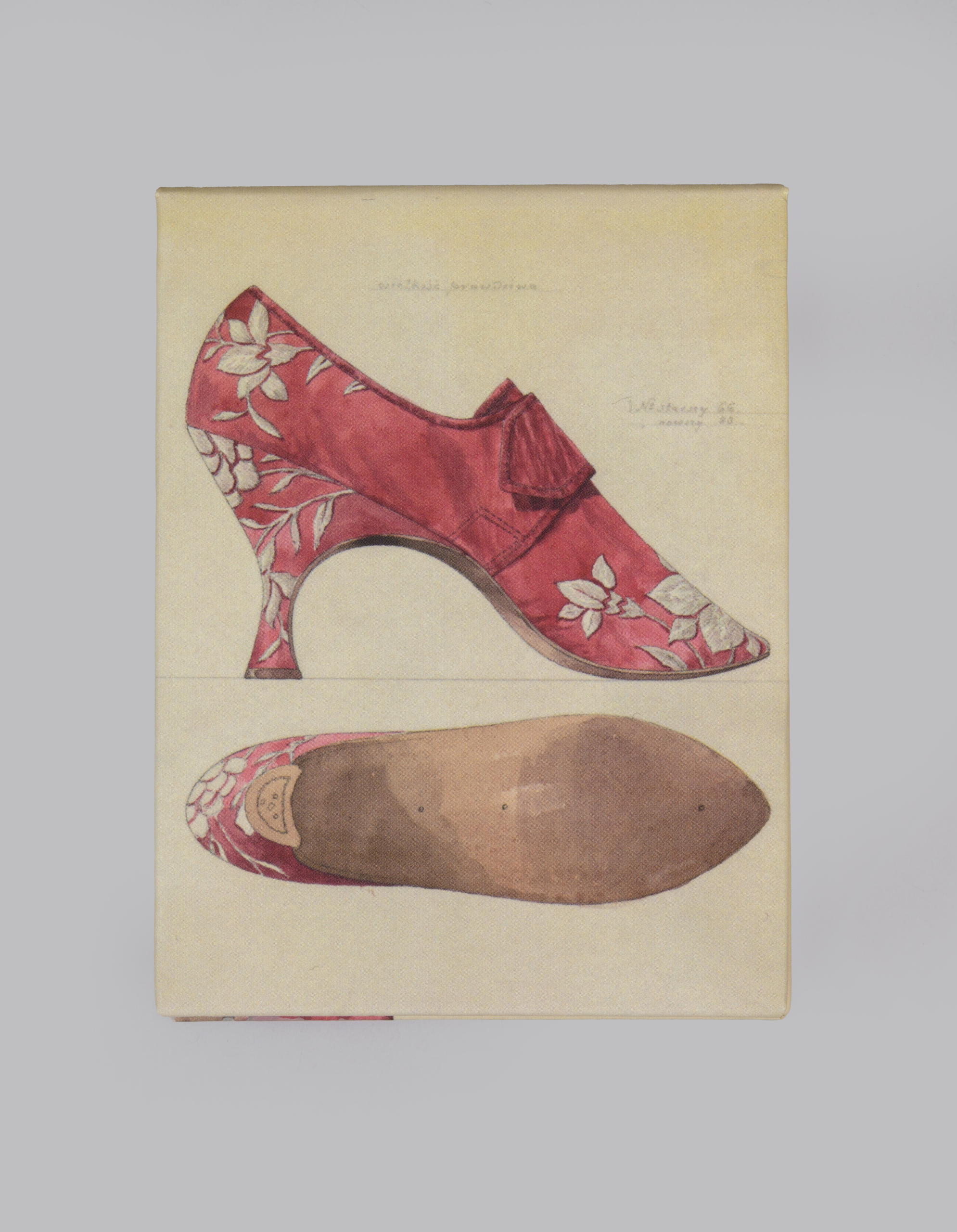 Notes z akwarelą przedstawiającą pantofel Marii Klementyny Sobieskiej; Władysław Roman Sztojcman, 1916 Muzeum Narodowe w Warszawie.
