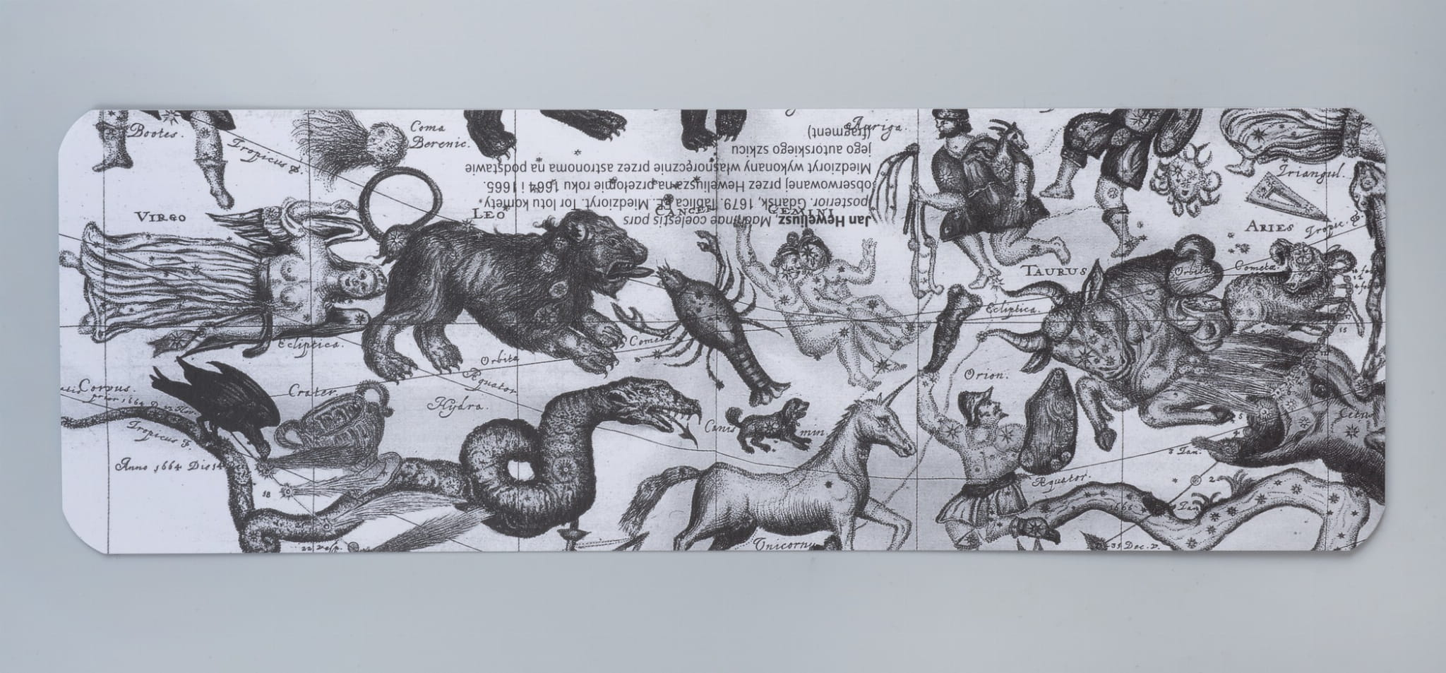 Jan Heweliusz, Machinae coelestis pars pasteriors. Gdańsk, 1679. Tor lotu komety obserwowanej przez Heweliusza na przełomie 1664 i 1665. Miedzioryt wykonany własnoręcznie przez astronoma na podstawie jego autorskiego projektu (fragment).