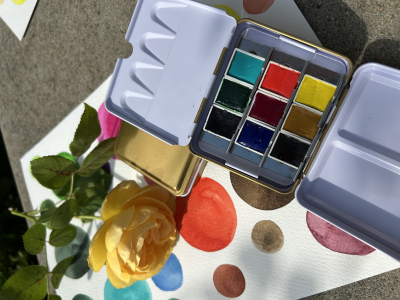 Kolory: 204 Lemon Yellow, 109 Gold Ochre, 242 Sepia, 319 Pyrrole Scarlet, 332 Quin. Magenta, 233 Ultramarine Light, 408 Cobalt Teal, 233 Sap Green, 409 Perylene Green.