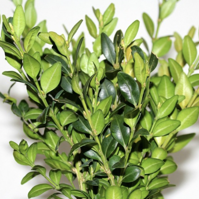 Sam bukszpan jest krzewem bardzo podatnym na strzyżenie i formowanie, w zależności więc od tego, jaki kształt chcemy mu nadać, tak możemy go formować. Preferuje miejsca nasłonecznione, więc płasko rozpościerające się i dostępne promieniom słonecznym ogrody barokowe wydają się dla niego doskonałym miejscem. W ogrodowych żywopłotach jego gałązki są silnie zwarte i mocno ze sobą posplatane. Tegoroczne pędy mają kolor zielony, natomiast starsze gałązki są jasnozielono-brązowe. Gęsto wyrastające z gałązek skórzaste, grube ciemnozielone liście mają eliptyczny kształt, a ich końce zwykle wywijają się lekko w dół. Wzdłuż przez środek niewielkich liści biegnie wklęsły nerw, dzielący powierzchnię blaszki liściowej na dwie podłużne części. Liście osadzone są na pędach naprzeciwlegle i wyrastają na krótkich ogonkach.