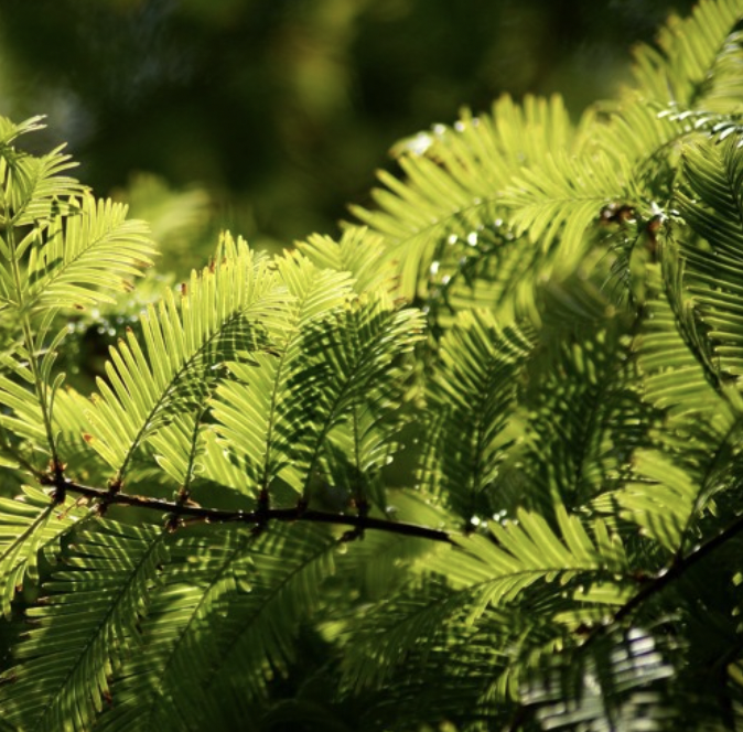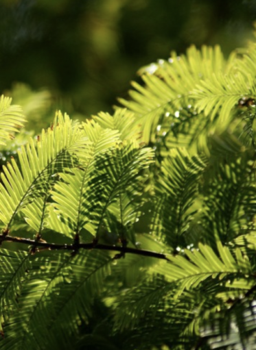 W północno-zachodniej części stara wierzba płacząca opuszcza swe długie, wiotkie gałązki w dół, sięgając powierzchni wody. Od południa z wierzbą sąsiaduje duża, silnie rozrośnięta, gęsta kępa paproci ciągnąca się od alejki nad stawem, aż do jego wód.