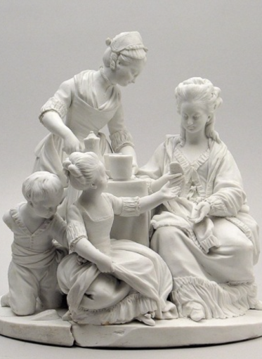 Wszystkie wykonywane ruchy są naturalne, swobodne. Nietrudno zidentyfikować przedstawione postaci jako rodzinę spożywającą razem śniadanie w domowym zaciszu. Jednocześnie szczegółowe oddanie modnych wówczas strojów, a także zastawa śniadaniowa i obecność służącej dodają figurce elegancji i wdzięku. Figurka pochodzi z kolekcji Muzeum Pałacu Króla Jana III w Wilanowie.