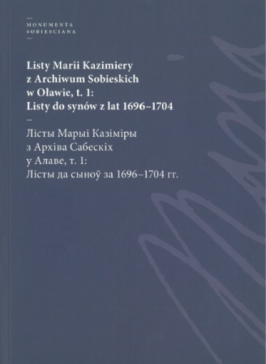 Zasoby Archiwum Sobieskich w Oławie (obecnie w Narodowym Historycznym Archiwum Białorusi w Mińsku) mają fundamentalne znaczenie dla badań dziejów rodu Sobieskich oraz samej Marii Kazimiery. Spośród obszernego materiału źródłowego zachowanego w mińskim archiwum w pierwszej kolejności została opracowana korespondencja królowej skierowana do synów (listy z jednostek nr 256, 257, 258, 259, 260), z okresu po śmierci Jana III, gdy Marię Kazimierę pochłaniały zabiegi o zabezpieczenie i podział majątku rodowego, starania o tron Rzeczypospolitej dla Jakuba Ludwika oraz prób ułożenia relacji z nowym władcą Augustem II. Gdy próby te nie powiodły się, Maria Kazimiera zdecydowała się na opuszczenie Rzeczypospolitej i wyjazd do Rzymu, dzięki czemu uniknęła zepchnięcia do roli „zwykłej” magnatki. Listy pozwalają prześledzić proces dojrzewania do tej decyzji oraz determinację w dążeniu do utrzymania królewskiego statusu rodziny, podtrzymywania pamięci o czynach męża i gloryfikacji osoby Jana III (…).