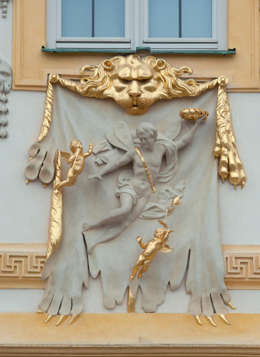 Na koniec Alegoria Chwały została poddana pracom pozłotniczym. Wykonano nowe złocenia na zewnętrznej stronie skóry, wieńcu i wstędze, uzyskując wyrazisty kontrast z elementami białymi. Dzięki temu rzeźba wpisała się w układ ikonograficzno-kolorystyczny dekoracji fasad pałacu.