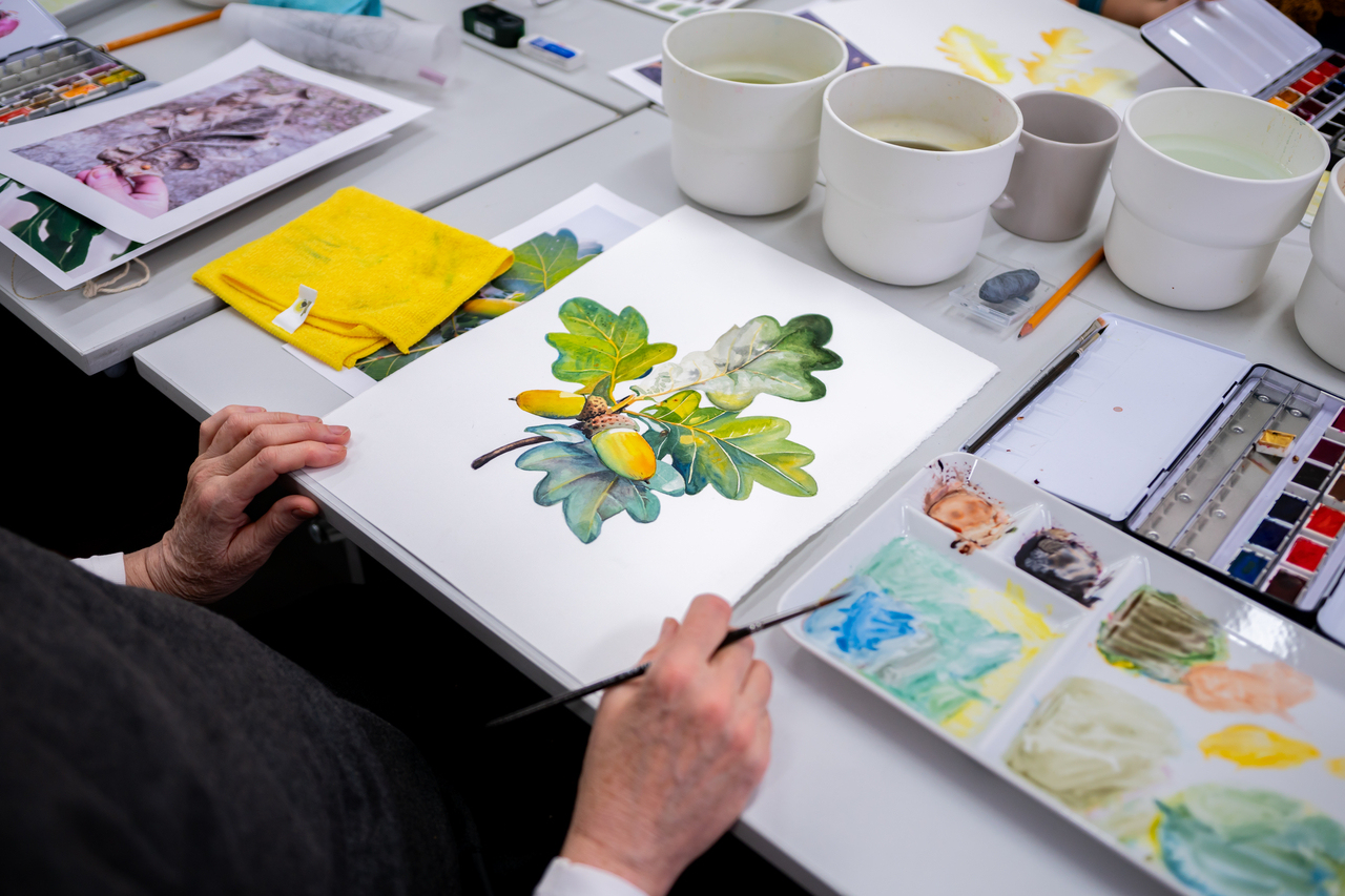 Podczas warsztatów ilustracji botanicznej uczestnicy poznają zasady naukowego przedstawiania flory i pod okiem doświadczonej artystki Izabeli Wolskiej-Kuśmider samodzielnie wykonują ilustracje w klasycznej technice akwarelowej. Dzięki temu powstają niezwykle precyzyjne, artystyczne portrety, które dokumentują bogactwo wilanowskiej przyrody. Ilustracje stanowią współczesne nawiązanie do tradycji dawnych florilegiów – ilustrowanych ksiąg botanicznych.