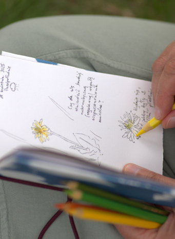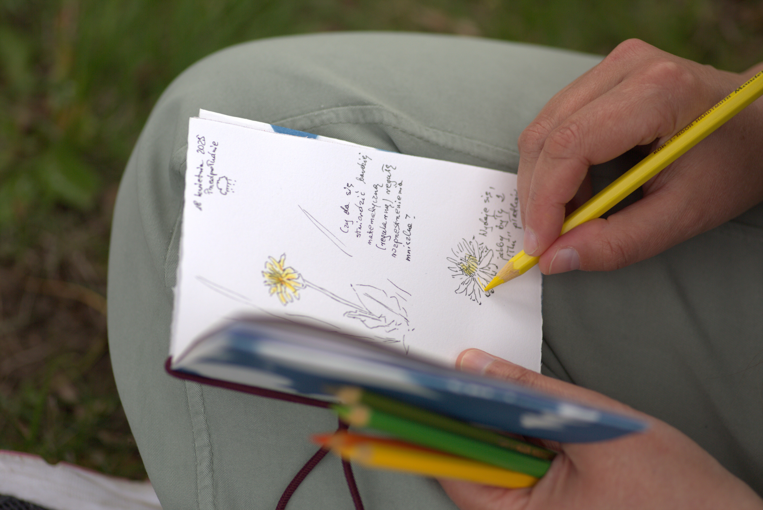 Szkicowanie z natury rozwija zdolność patrzenia i łączy nas z otoczeniem, osadza w czasie i przestrzeni. W nieustannie zmieniającym się świecie co dzień jest coś inspirującego do odkrycia! Podczas spotkania prowadzonego przez artystkę i przyrodniczkę poznamy terenowe narzędzia i techniki rysunkowe, a następnie wykorzystamy je w ogrodach do obserwacji świata natury i tworzenia artystycznego dziennika z notatkami przyrodniczymi. Umiejętność rysowania nie jest niezbędna.